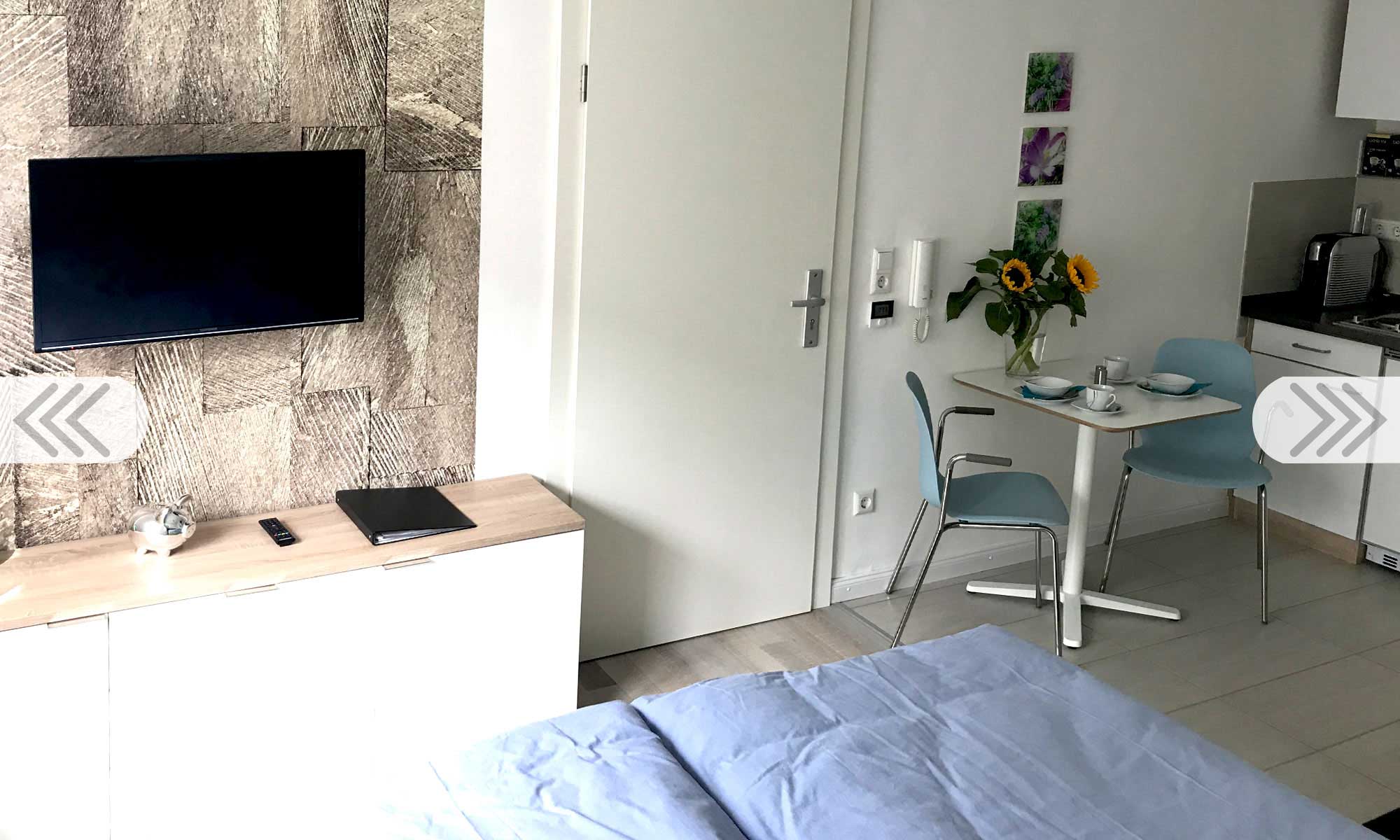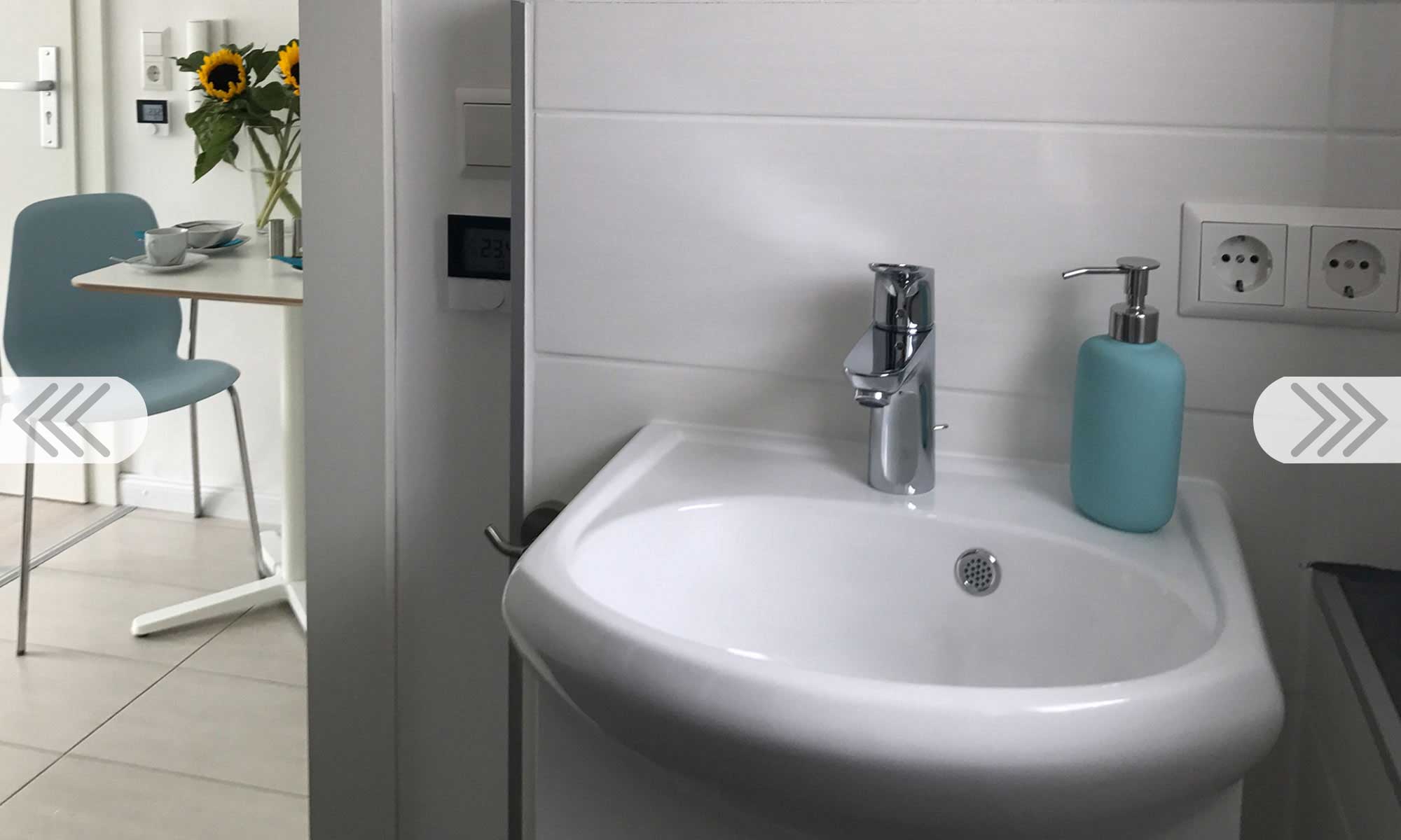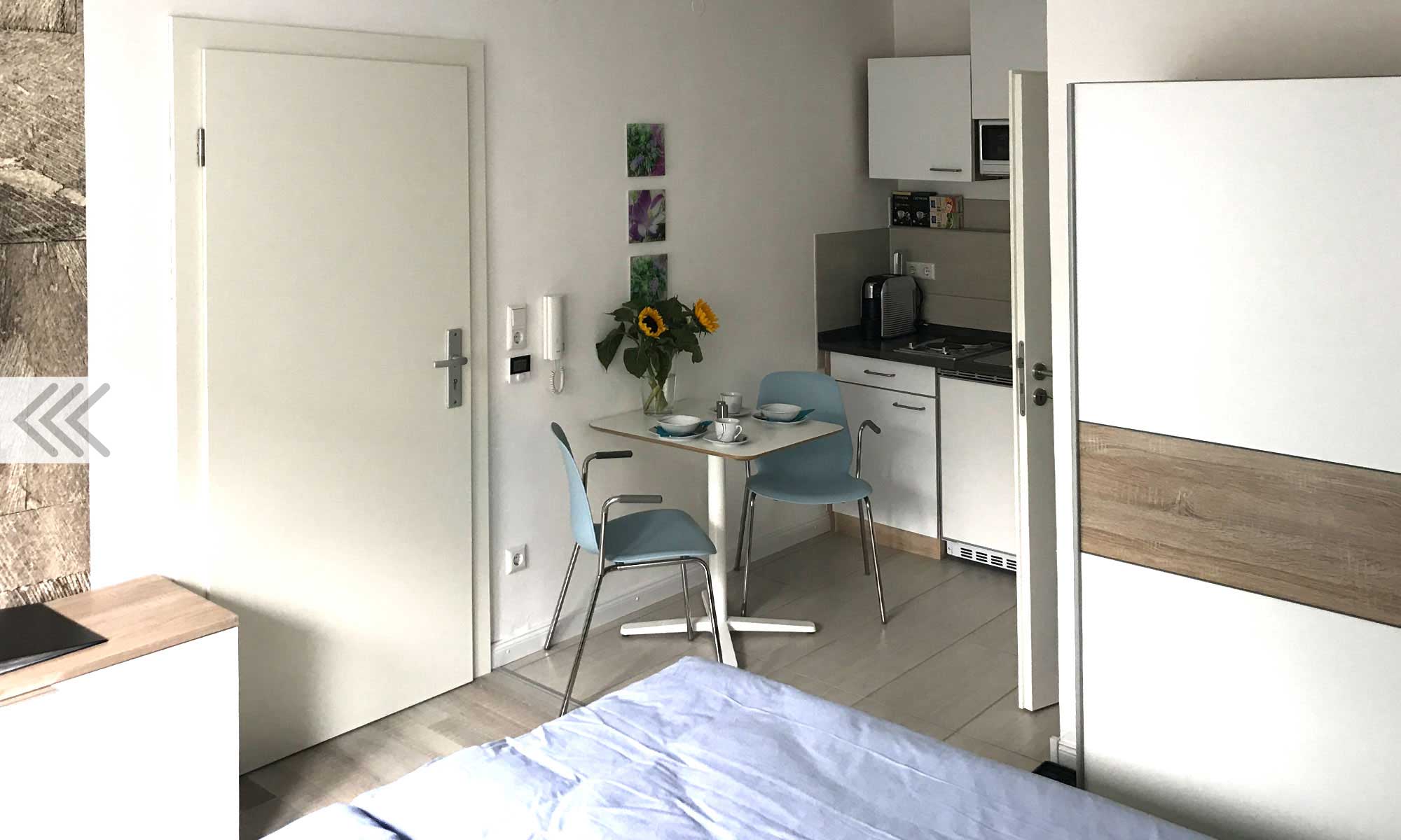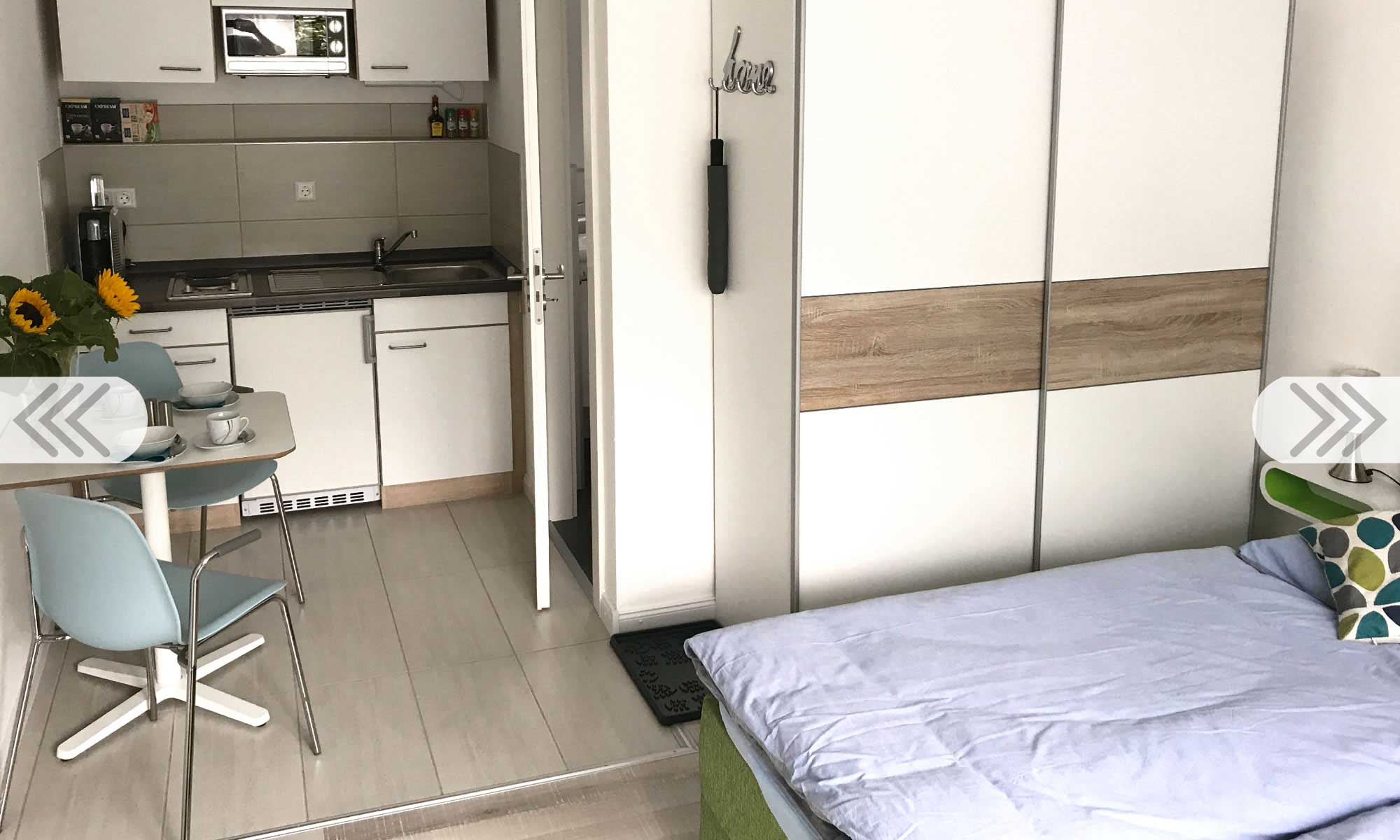 Mit ca. 20 qm bietet dieses lichthelle Apartment durch seine geschickte Raumaufteilung mit einer Kochnische, Essplatz und modernem Bad ausreichend Platz für bis zu zwei Personen.