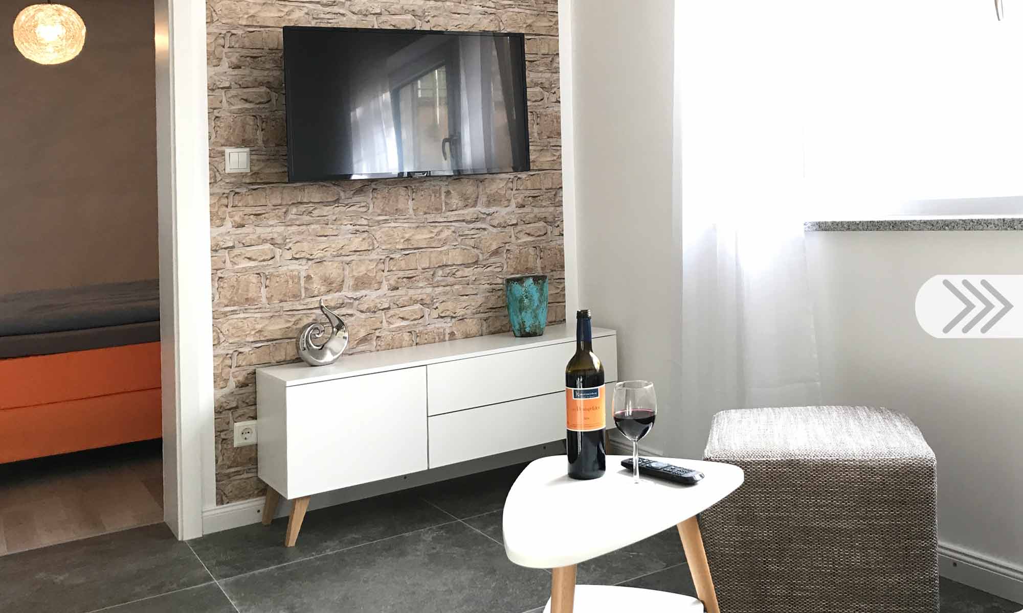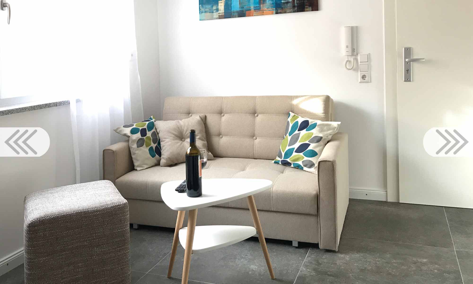 Die helle Wohnung ist ca. 42 qm groß und bietet Platz für bis zu 3 Erw. oder 2 Erw. mit 2 Kindern. Im Wohnraum befindet sich eine großzügige Küche mit Esstisch. Dort kann zusätzlich zum Doppelbett eine Schlafcouch (Breite 1,30m) ausgezogen werden. Die Wohnung ist mit einem Waschtrockner ausgestattet.